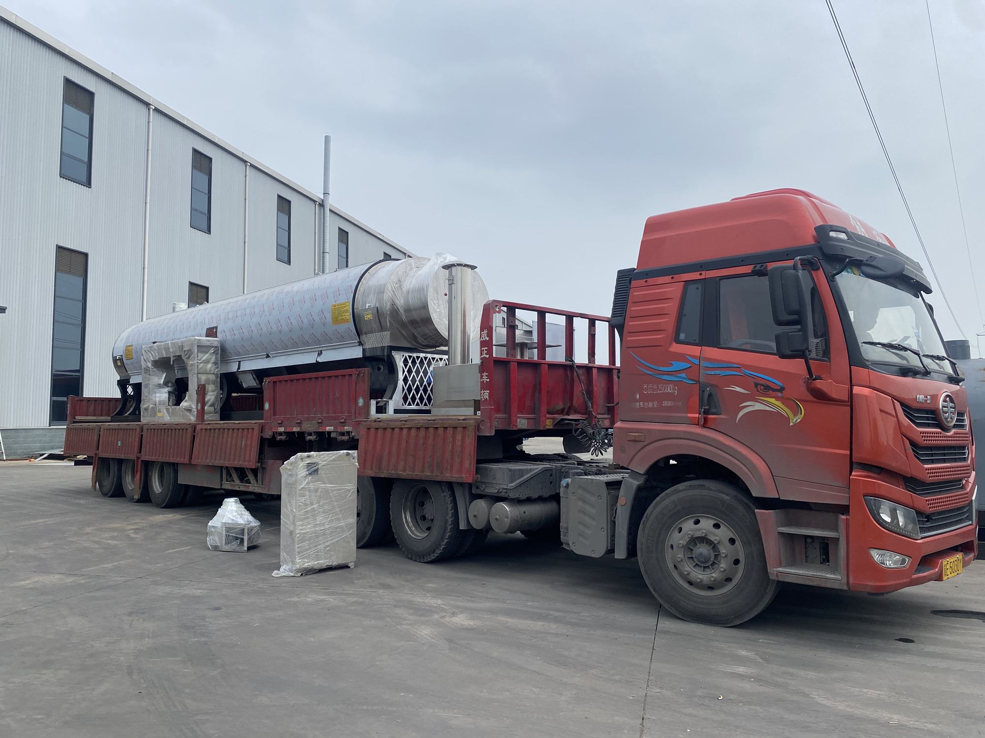 山東省發貨炒豆機、配電柜、門式提升機、地上料倉、除塵器水箱